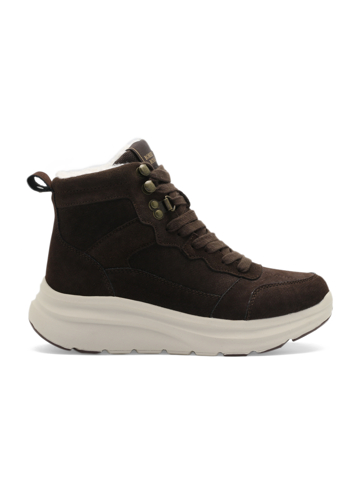 Rifugio er en lett og sporty sneakerboot med varmt, mykt pelsfôr. Modellen har ankelhøyt skaft, snøring foran og praktisk hempe bak. Den lette phylon-yttersålen gir utmerket støtdemping, slitestyrke og fleksibilitet, mens det grove mønsteret sikrer bedre grep på vinterføre. Overdelen kombinerer semsket skinn og oxford-stoff, med et vattert skaft som gir ekstra varme. Perfekt kombinasjon av komfort og funksjonalitet til hverdag og lette vinterturer.