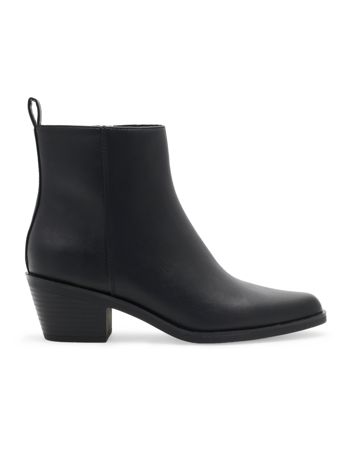 Alim Low er en stilren ankelboot laget i imitert skinn med spiss tupp og blokkhæl. Modellen har glidelås i siden for enkel på- og avtagning, og et tidløst design som passer til både hverdag og fest.