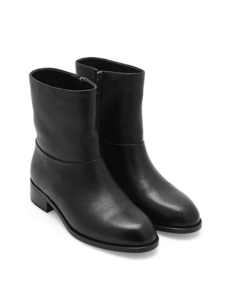 Camperos Low er en lav bikerboot dekorert med moderniserte harness-detaljer. Modellen har firkantet tupp, moderat blokkhæl og glidelåslukking i siden. Overdel i preget skinnimitasjon. Innvendig tyntfôret med mykt børstet tekstil for ekstra komfort.