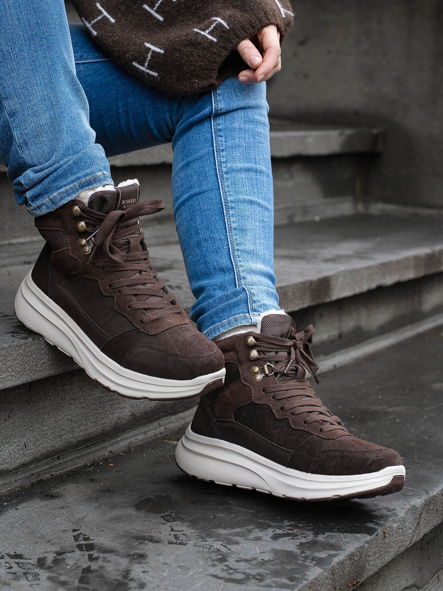 Rifugio er en lett og sporty sneakerboot med varmt, mykt pelsfôr. Modellen har ankelhøyt skaft, snøring foran og praktisk hempe bak. Den lette phylon-yttersålen gir god demping, slitestyrke og fleksibilitet, mens det grove mønsteret sikrer bedre grep på vinterføre. Overdelen kombinerer semsket skinn og oxford-stoff, med et vattert skaft som tilfører ekstra varme. Perfekt kombinasjon av komfort og funksjonalitet til hverdag og lette vinterturer.